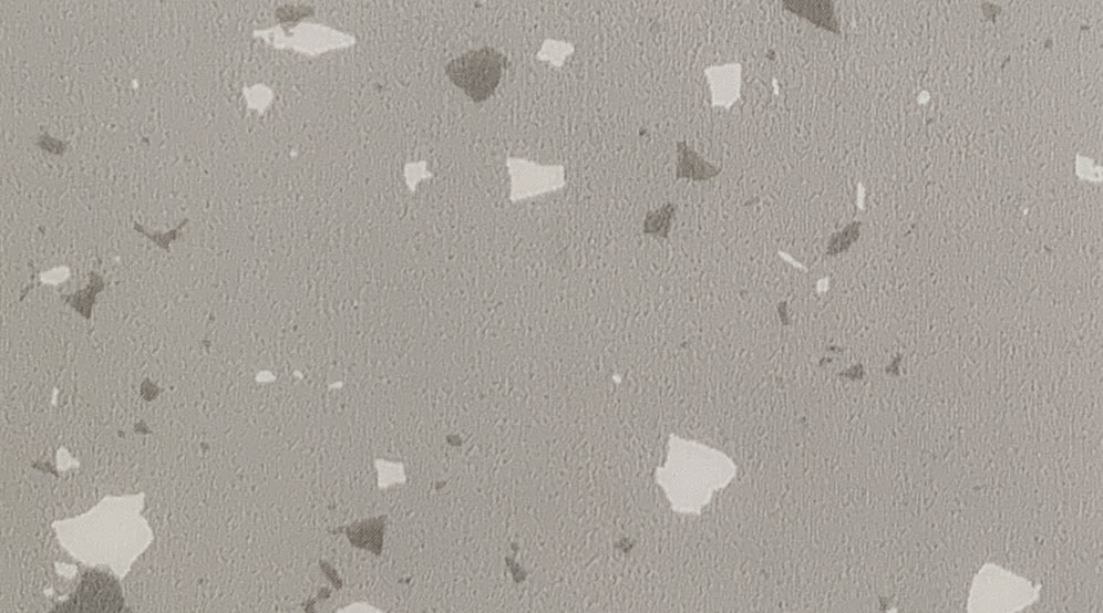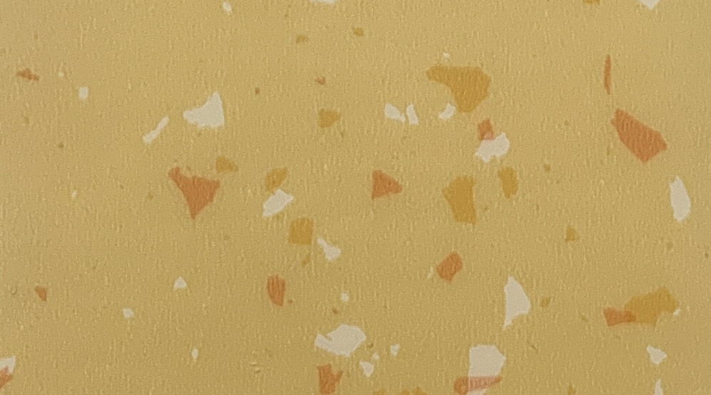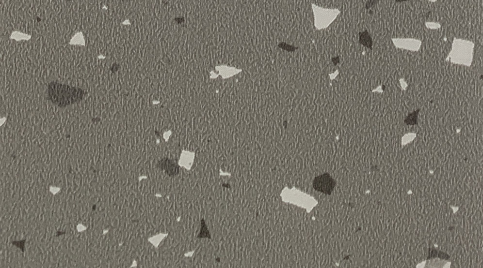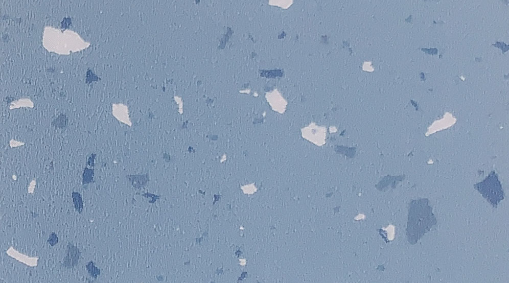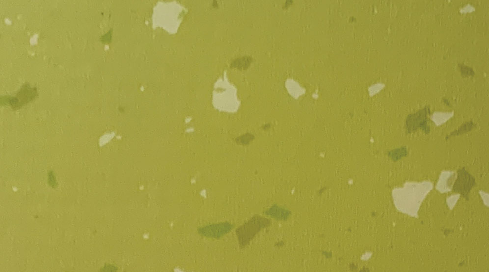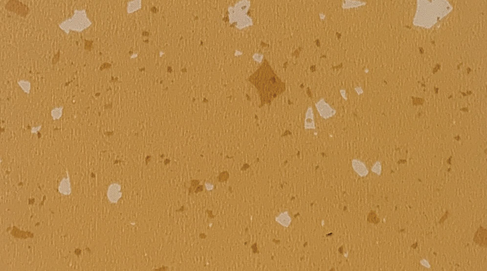● This flooring comprises of >2mm thick, a pure Vinyl wear layer incorporating very densely pressed coloured chips, with a matt finishing and without a transparent wear layer.