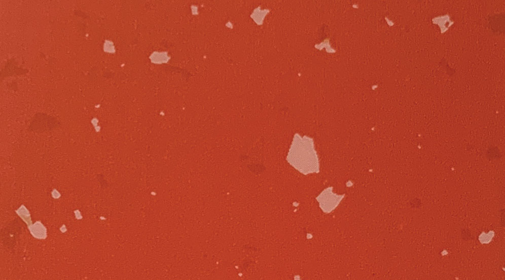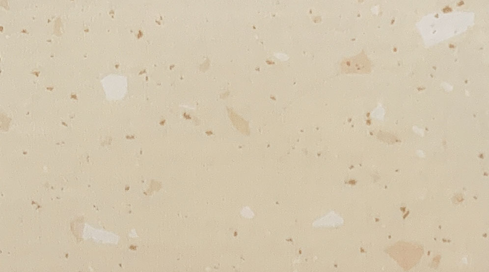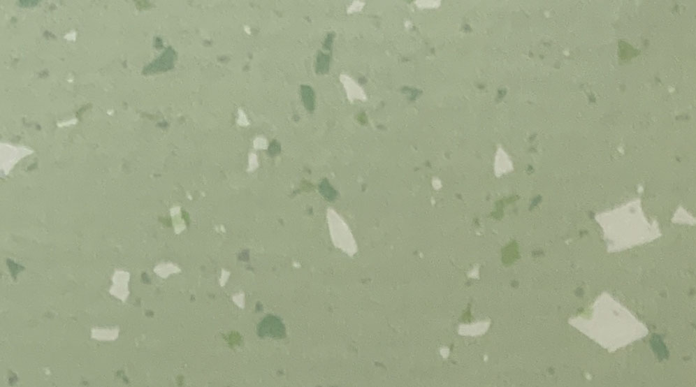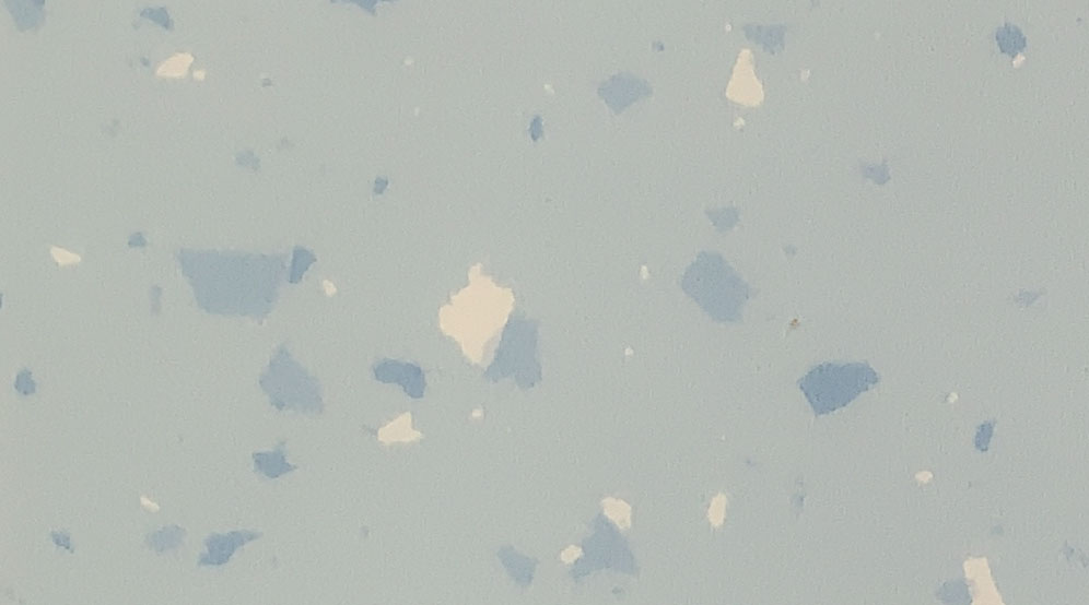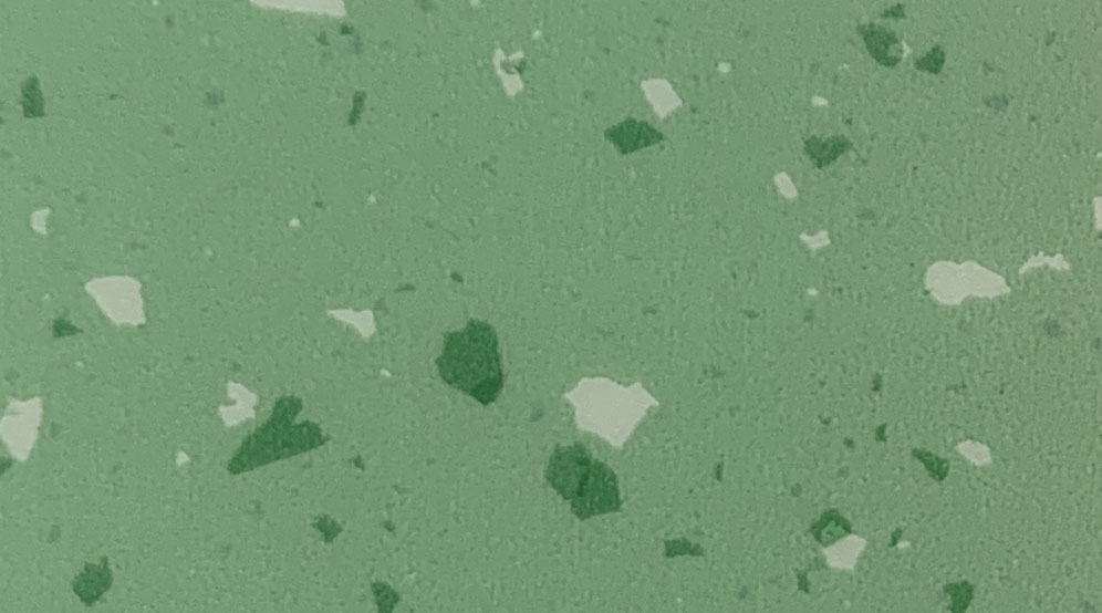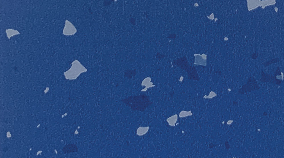 ● This flooring comprises of >2mm thick, a pure Vinyl wear layer incorporating very densely pressed coloured chips, with a matt finishing and without a transparent wear layer.